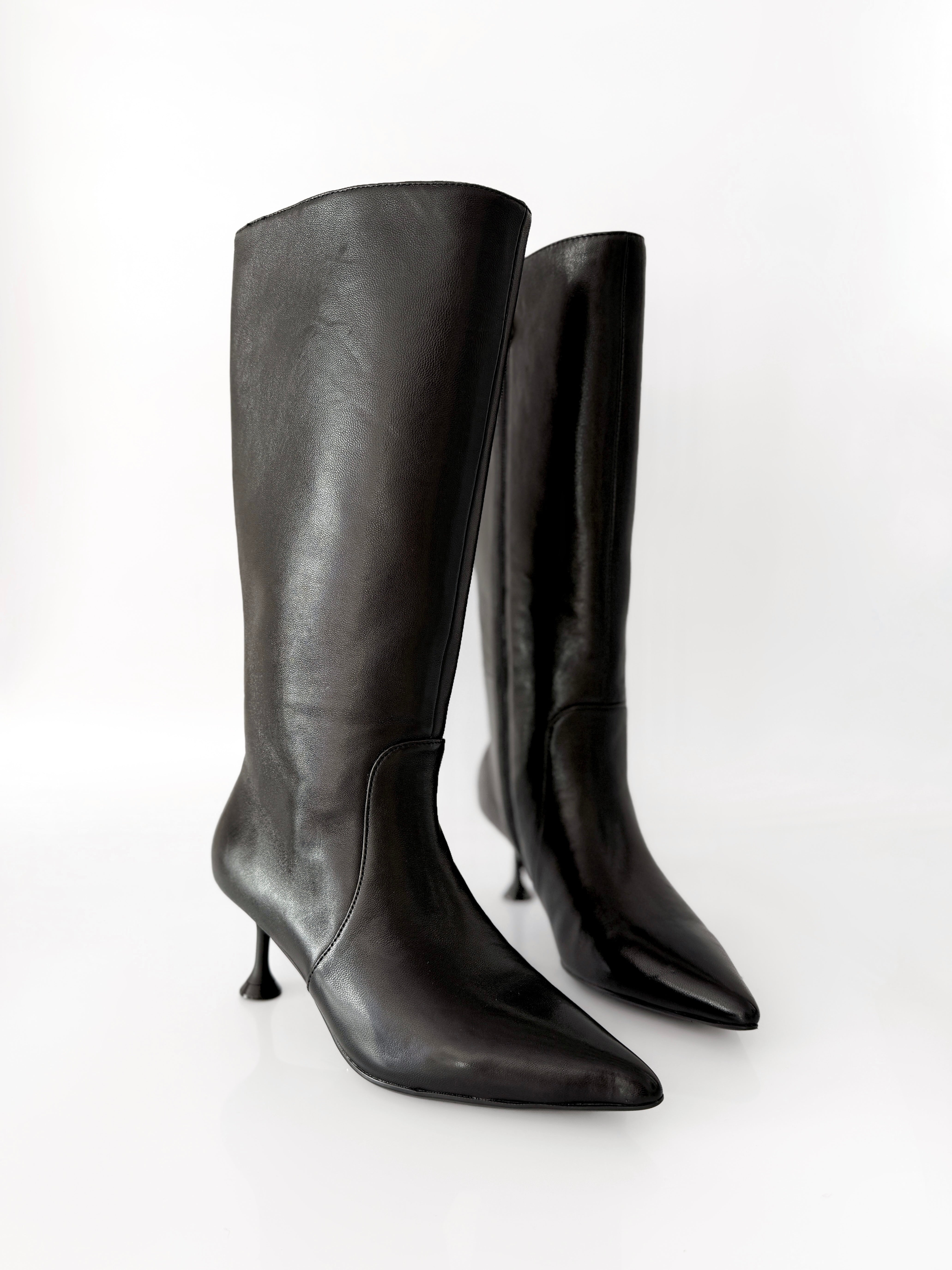 Questi stivali sono l’ideale per donare un’aggiunta glamour e grintosa ai tuoi look. L’elegante silhouette a punta si fonde con la confortevolezza del tacco a rocchetto che assicura stabilità alla camminata.