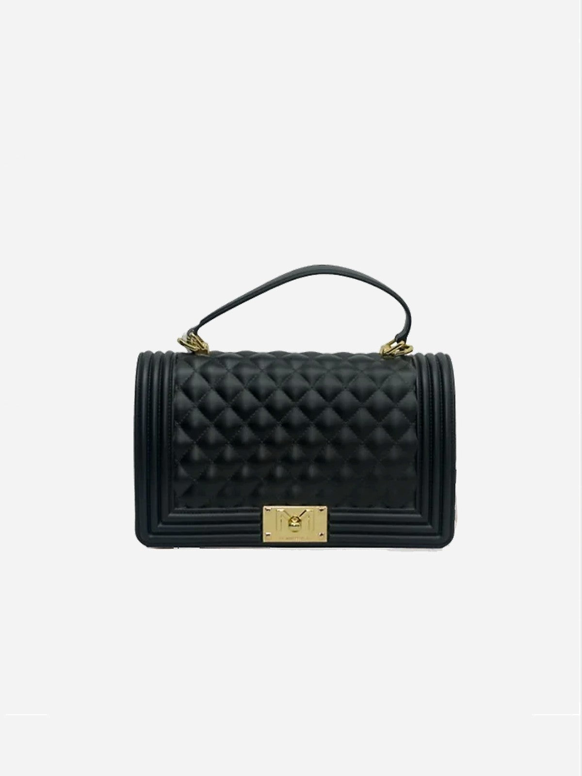 Realizzata interamente in gomma di alta qualità, sia all'interno che all'esterno, questa borsa offre una texture unica e una resistenza sorprendente. Il design elegante è arricchito da una chiusura a girello che aggiunge un tocco di raffinatezza.