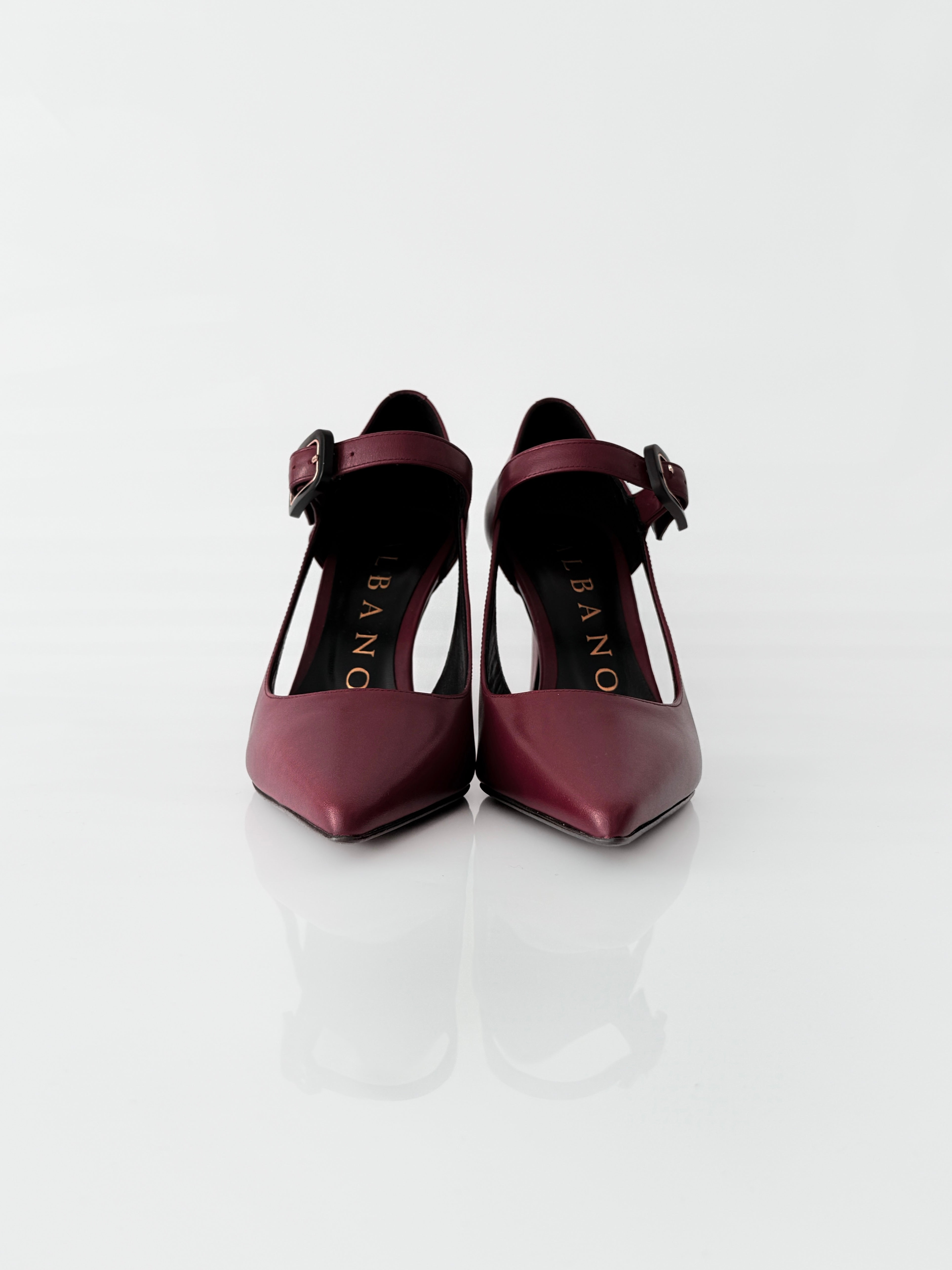 Décolleté in pelle bordeaux, eleganti e raffinate, Made in Italy. Dotate di tacco 8,5 cm, slanciano la tua figura ma restano comode grazie al tacco non estremamente sottile. Perfette per completare gli outfit autunno/inverno.