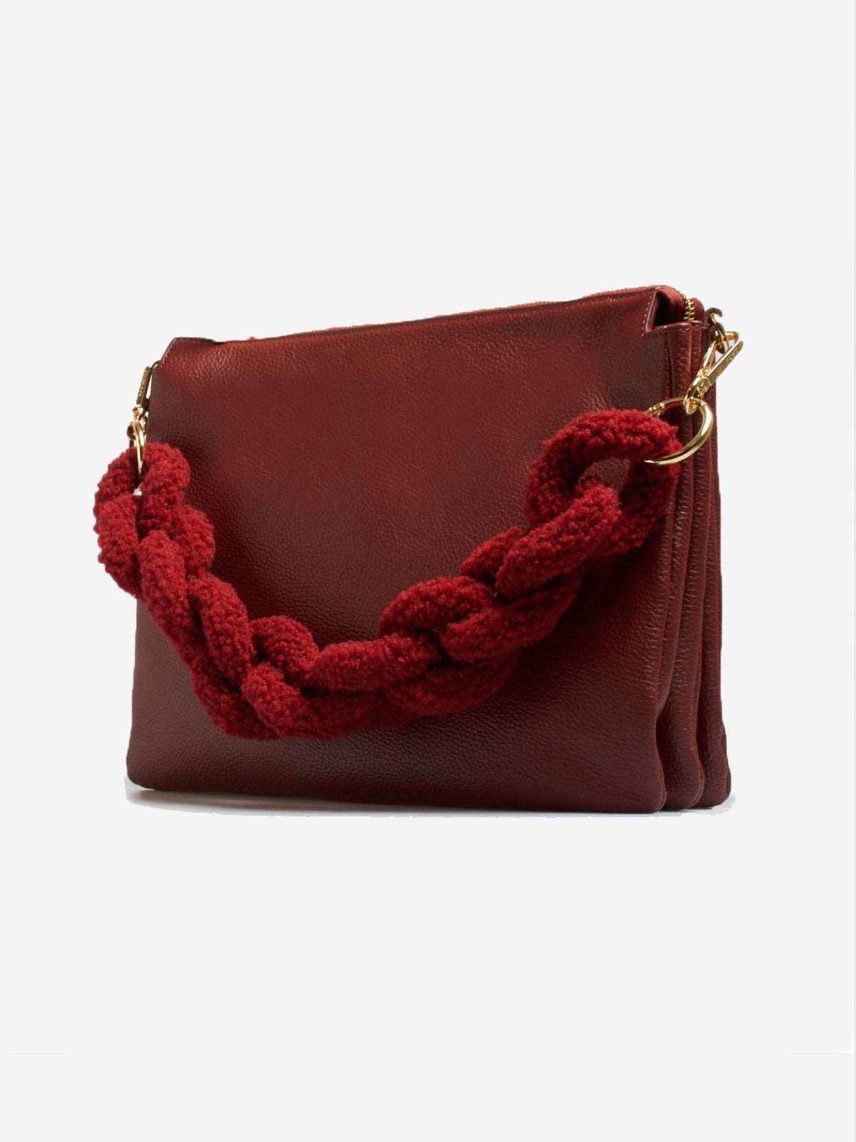 La tracolla Teddy Chain aggiunge un tocco morbido e ricercato alle tue borse. Realizzata in tessuto teddy con dettagli in catena. Made in Italy.