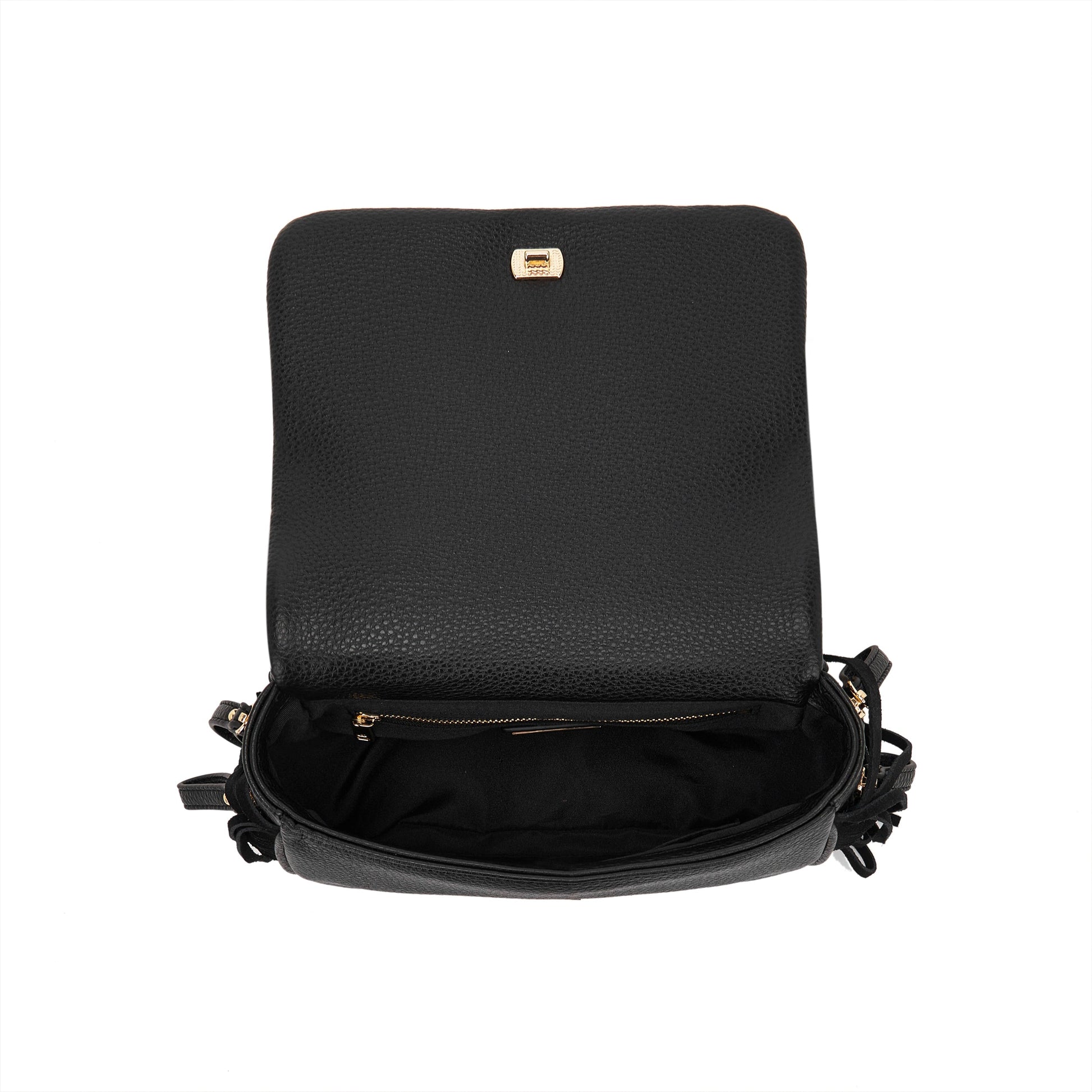 Isabel – Borsa a spalla piccola con frange Black