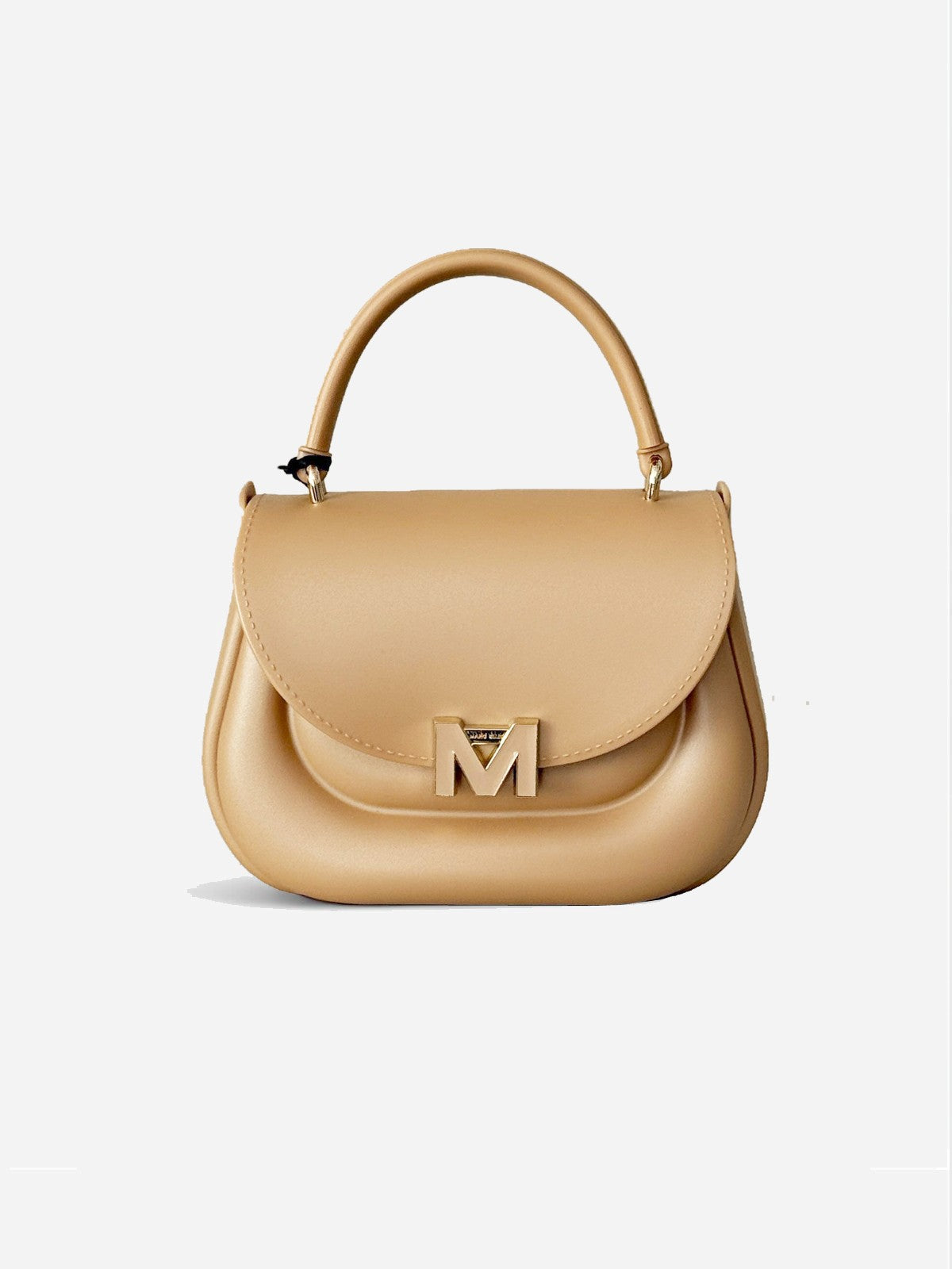 Realizzata in materiale rigido dalla linea arrotondata, presenta una pattina con chiusura a clip magnetica. L'interno è spazioso, scomparto unico ideale. Può essere portata a mano grazie al manico superiore, oppure a spalla/crossbody grazie alla tracolla a catena dorata inclusa, che aggiunge un tocco glam e versatile al modello.