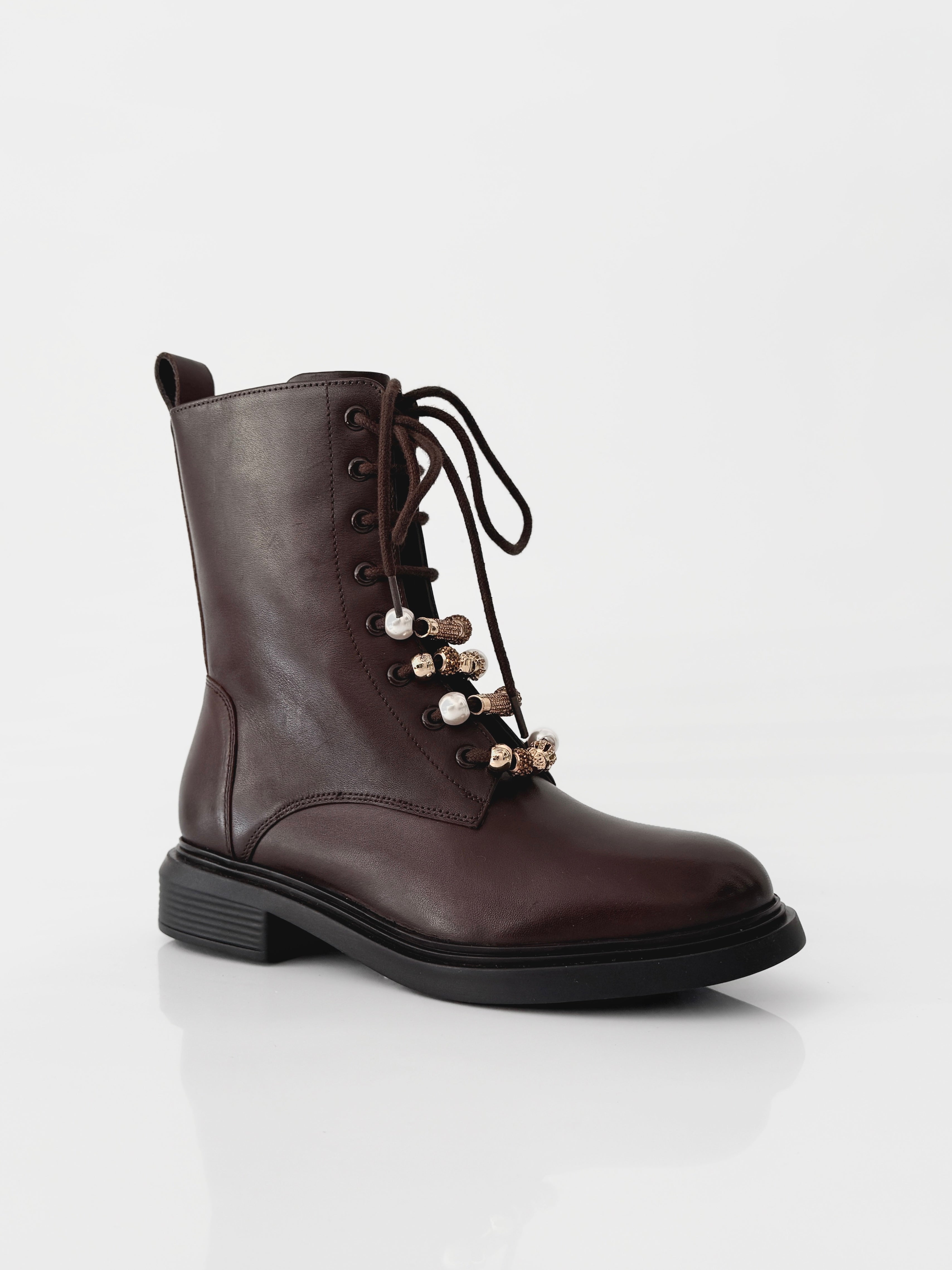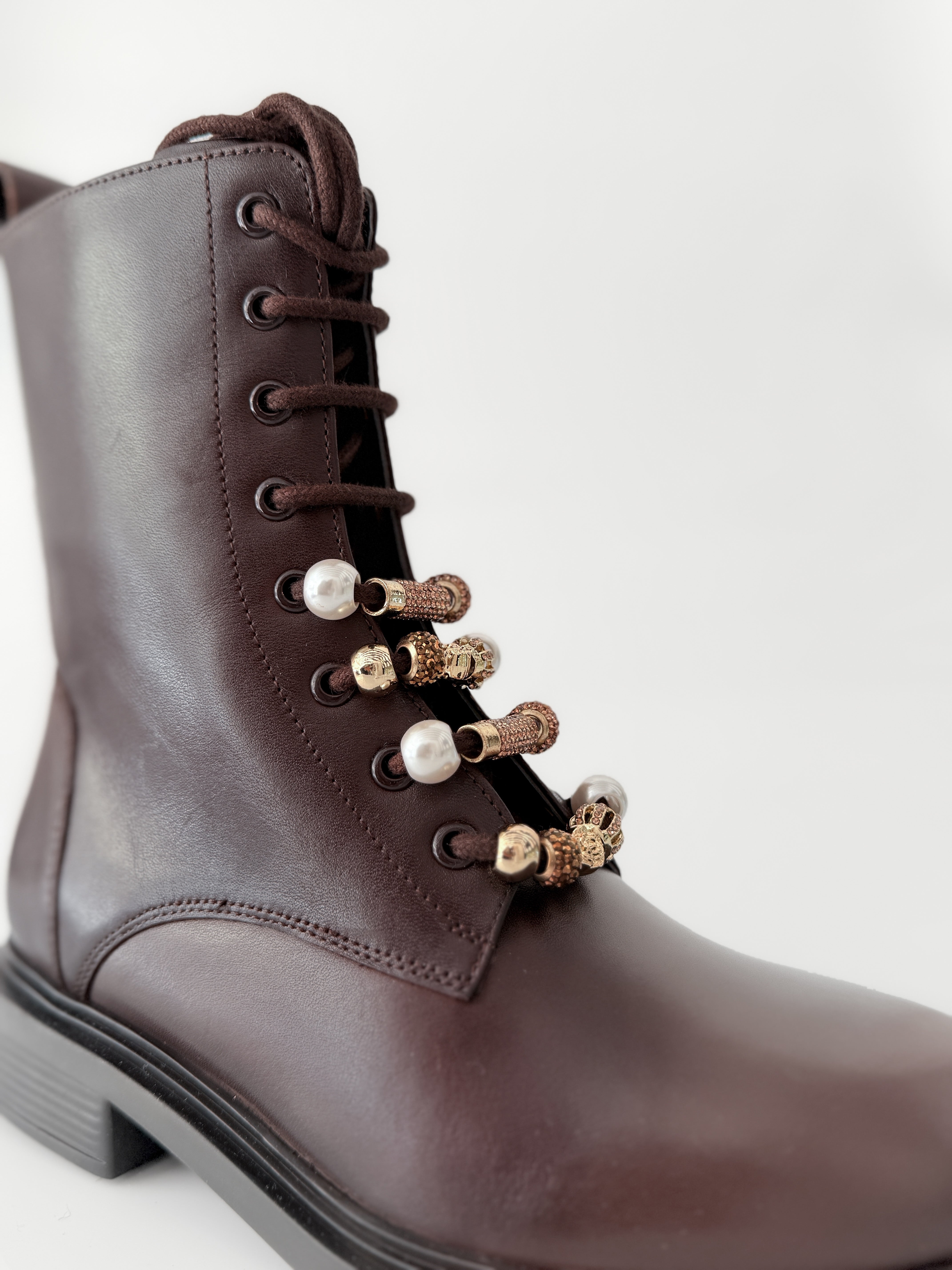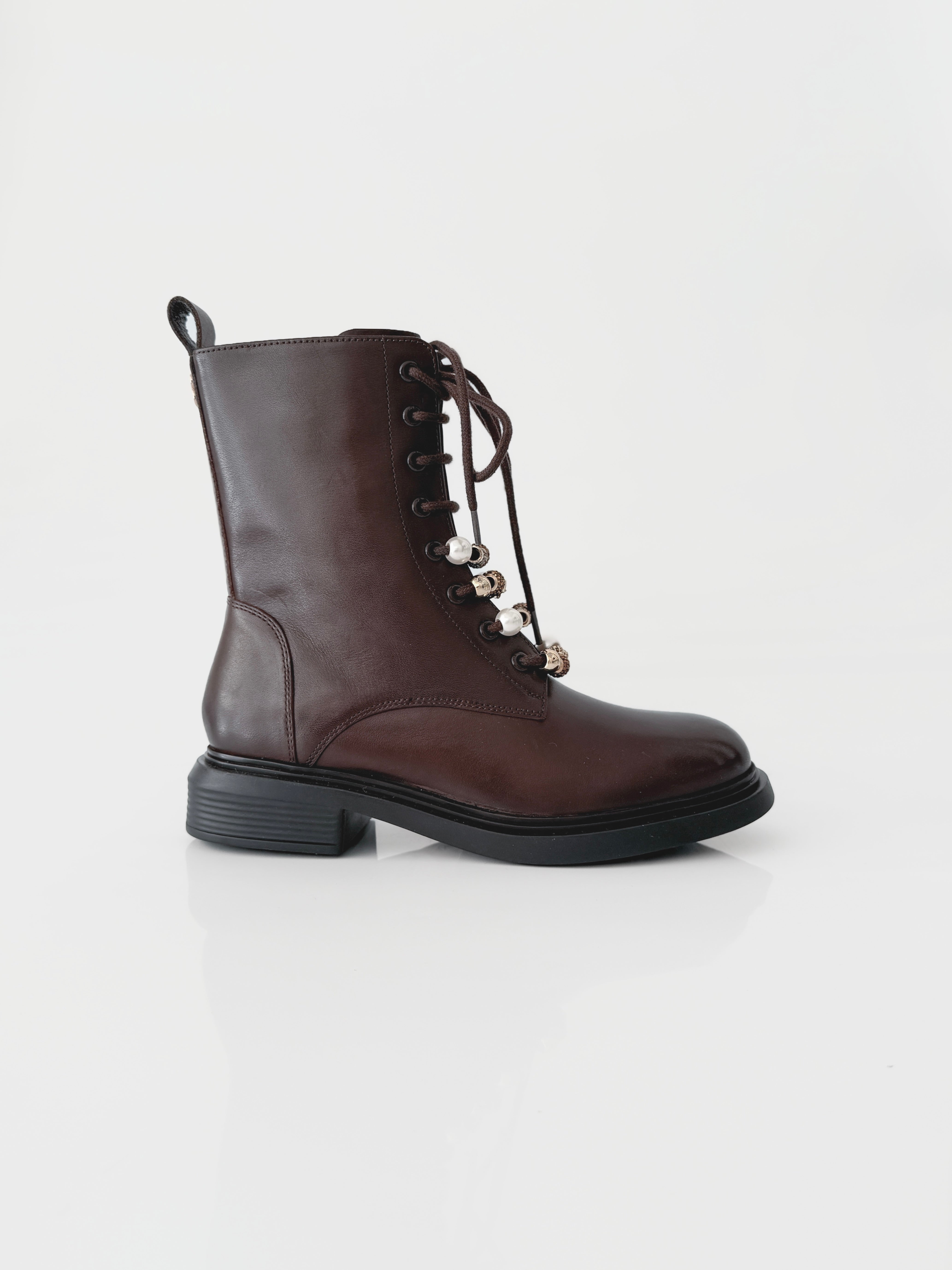 ELODIE – Stivaletto in pelle Testa di Moro con accessorio