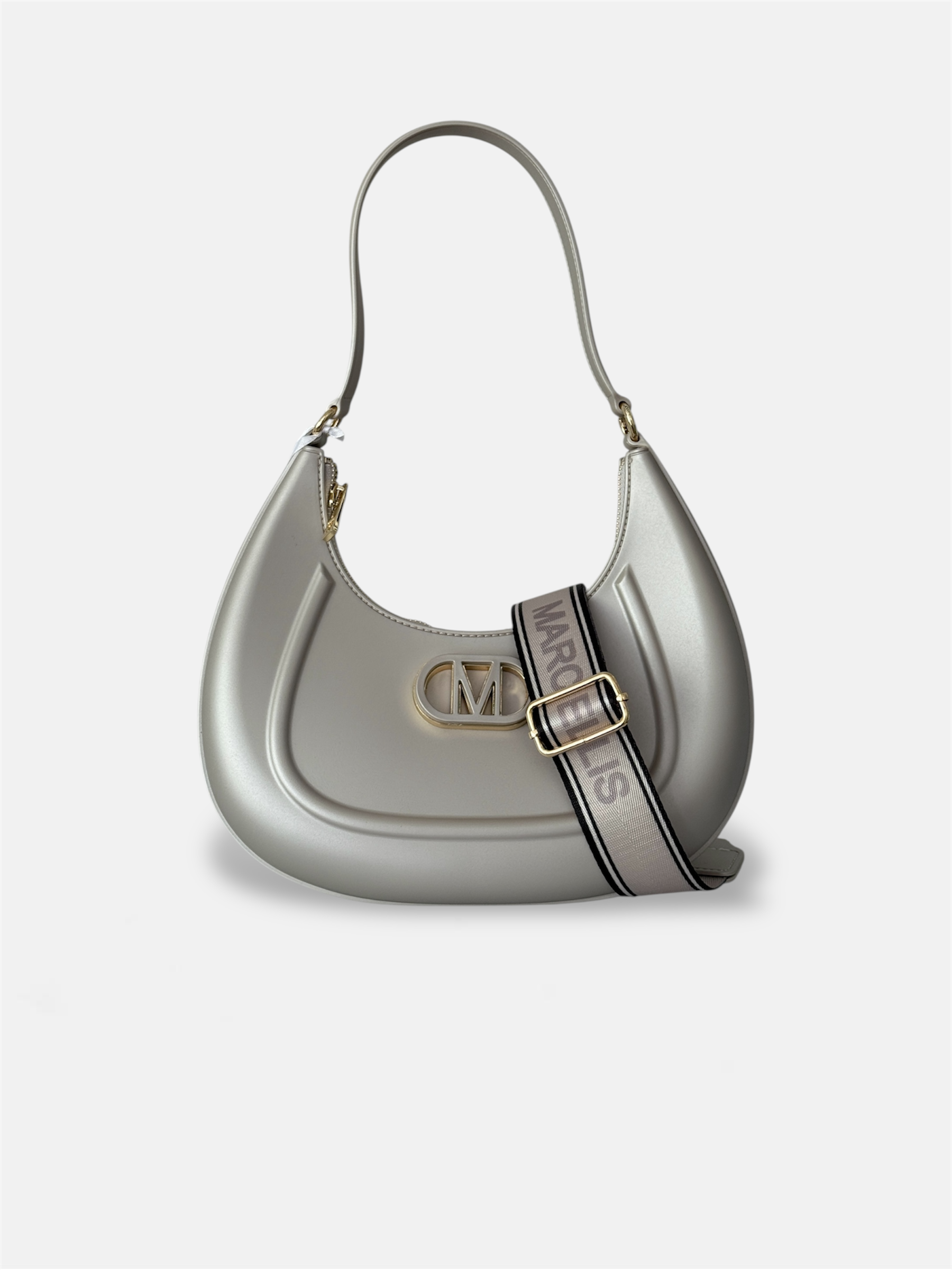 Borsa piccola PVC. Tracolla in tessuto legata.
