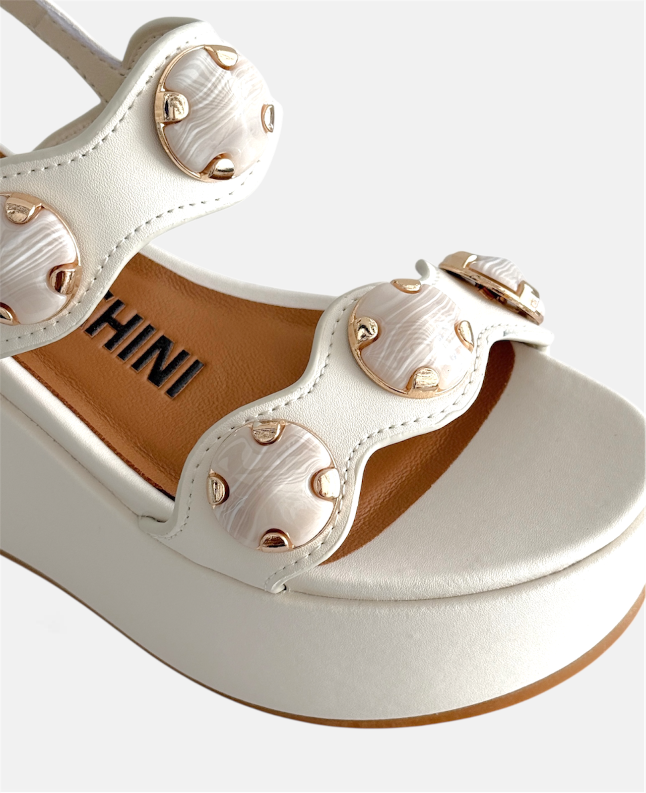 Tomaia e zeppa rivestita in pelle.