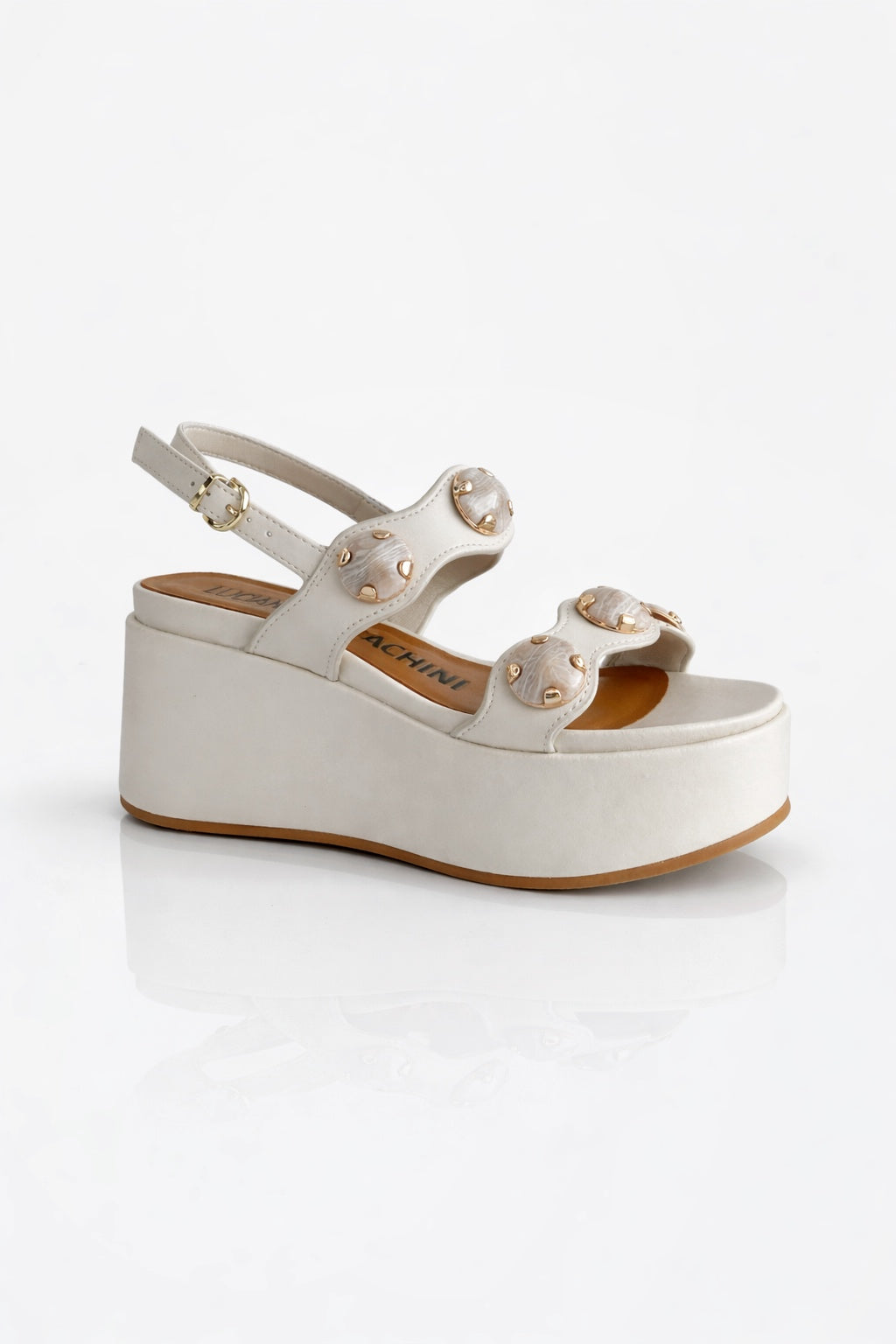 • Zeppa platform AL321 con bottoni Nappa Camel
